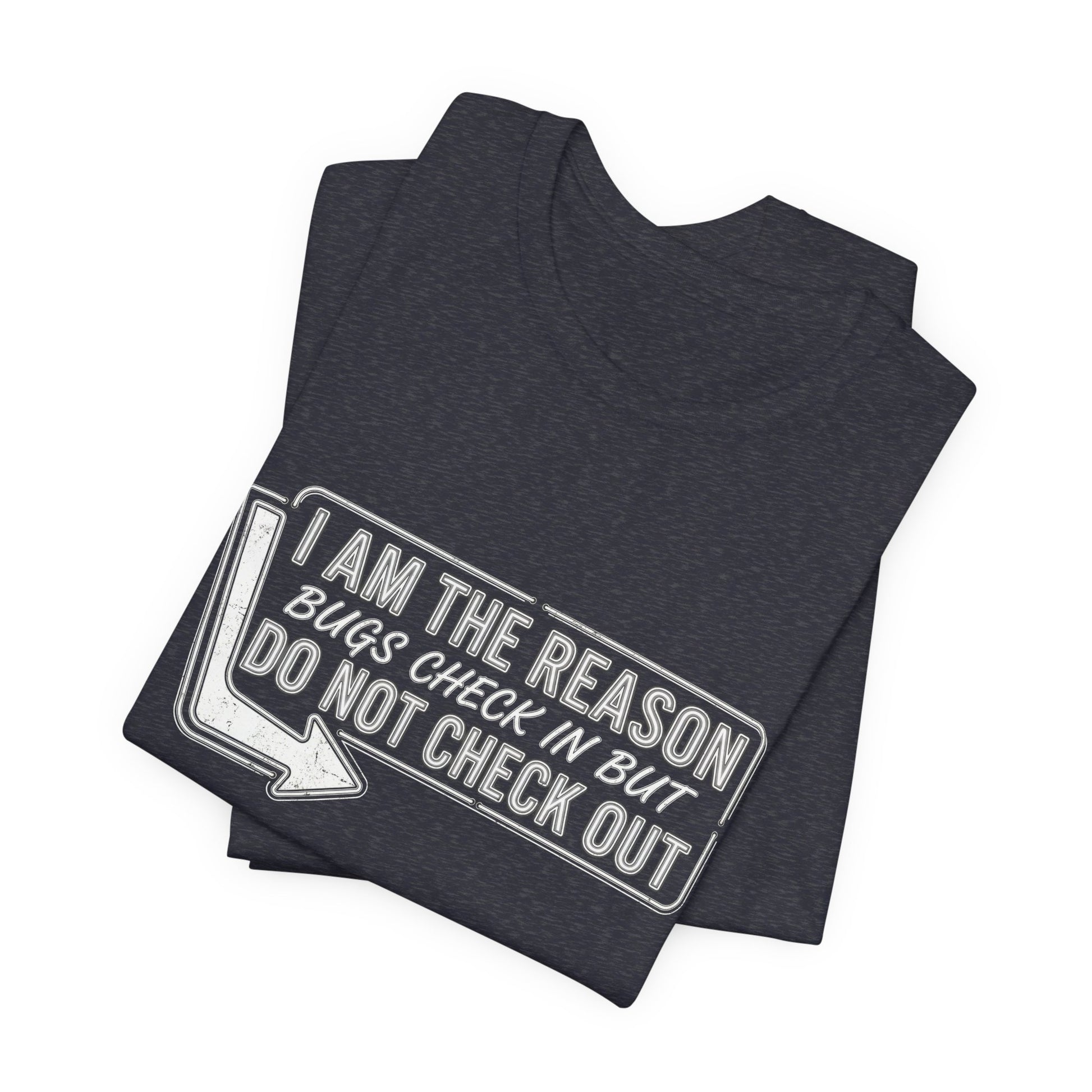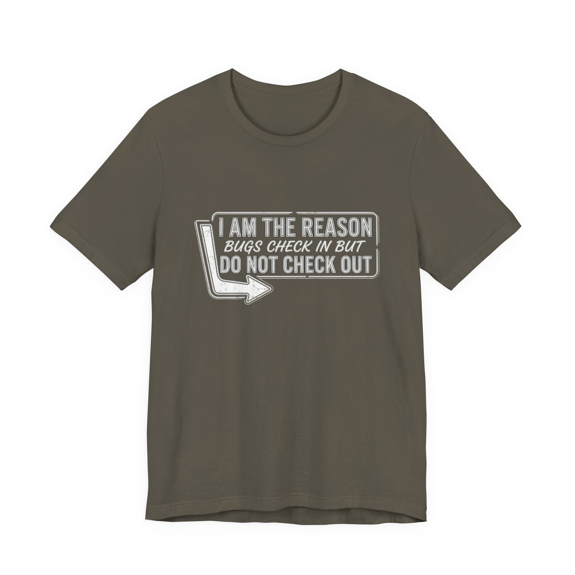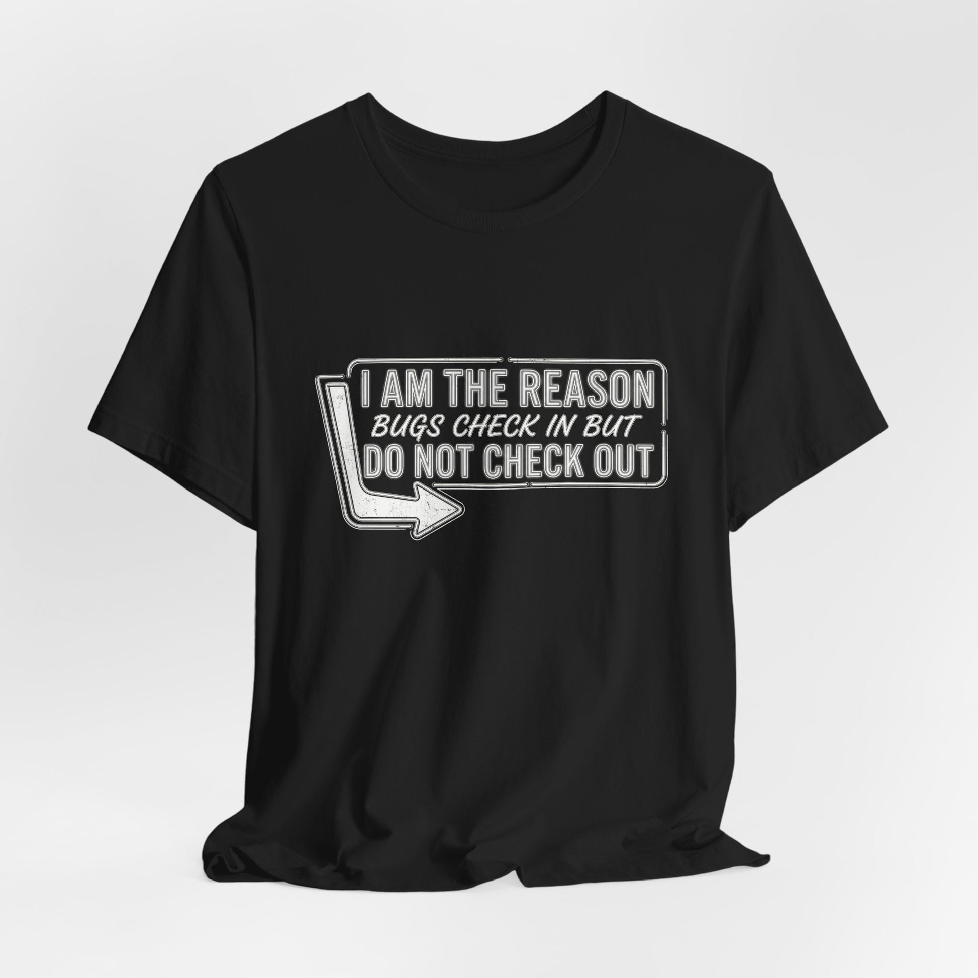 Bugs Check In But Don't Check Out - Funny Exterminator Graphic Tee