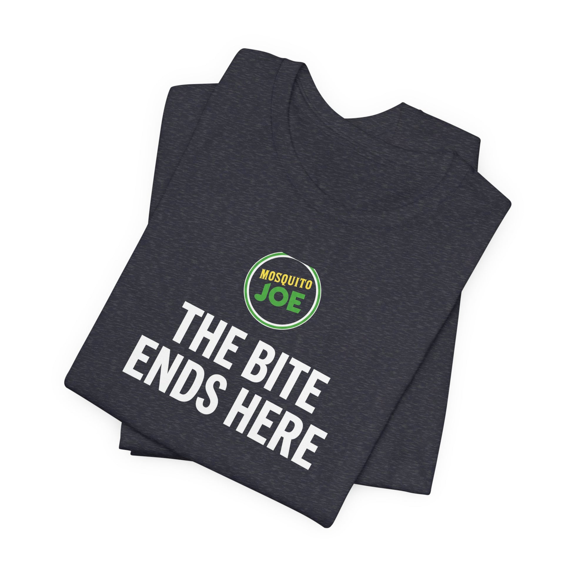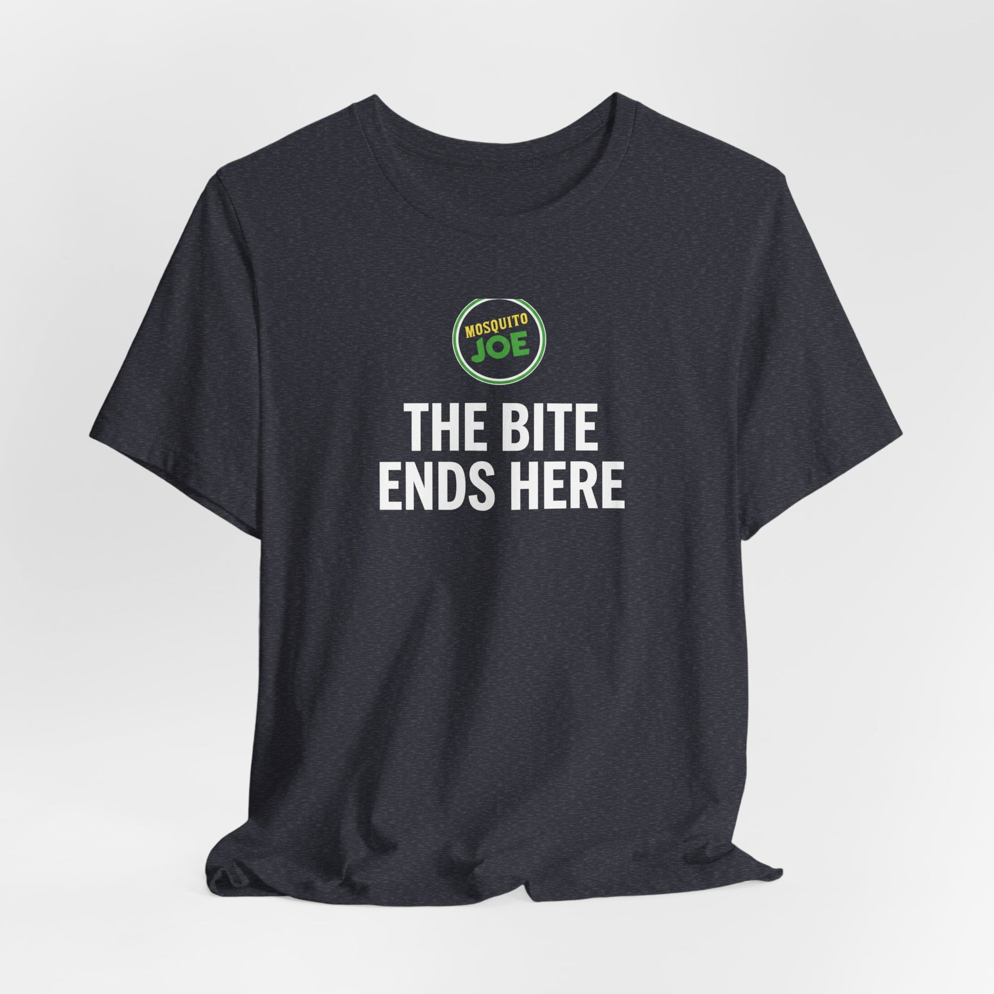 The Bite Ends Here! This Mosquito Joe crew tee features the official logo with bold typography and dead mosquito silhouettes. A must-have for pest control professionals who are on the front lines of mosquito warfare.